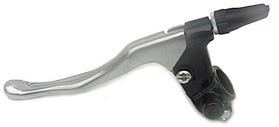 Soporte completo c/ rosca p/ espejo 8 mm. con manija Larga tipo VAM izquierda Aluminio COMBINADO (negro y pulido)-