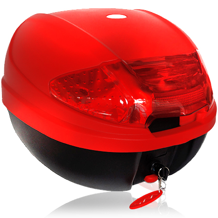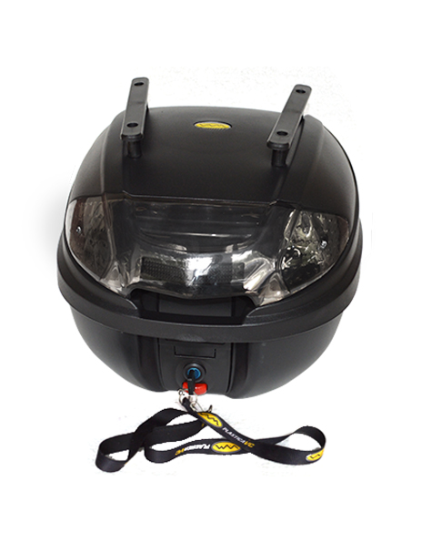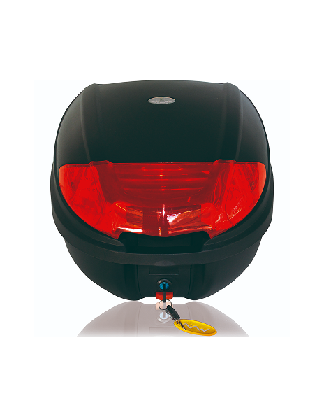 BAUL porta objetos mod. VAM30, medida 410x300x400 / 30 litros, con tope de apertura, base desmontable, respaldar y reflectivo trasero rojo