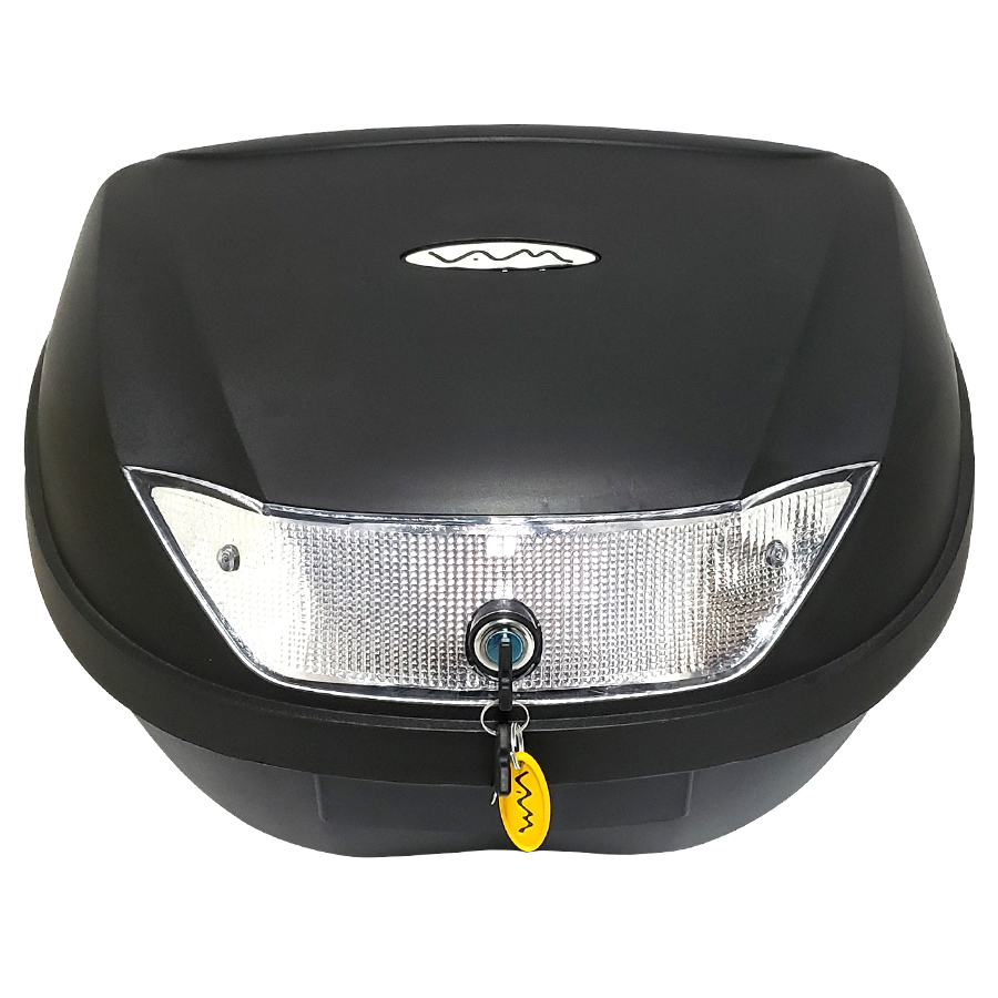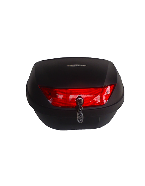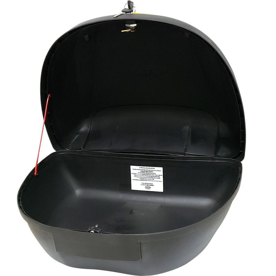 BAUL porta objetos mod. BIG48, medida 590x430x333, 48 litros, para 2 cascos, con tope de apertura, base desmontable desde interior y reflectivo trasero.