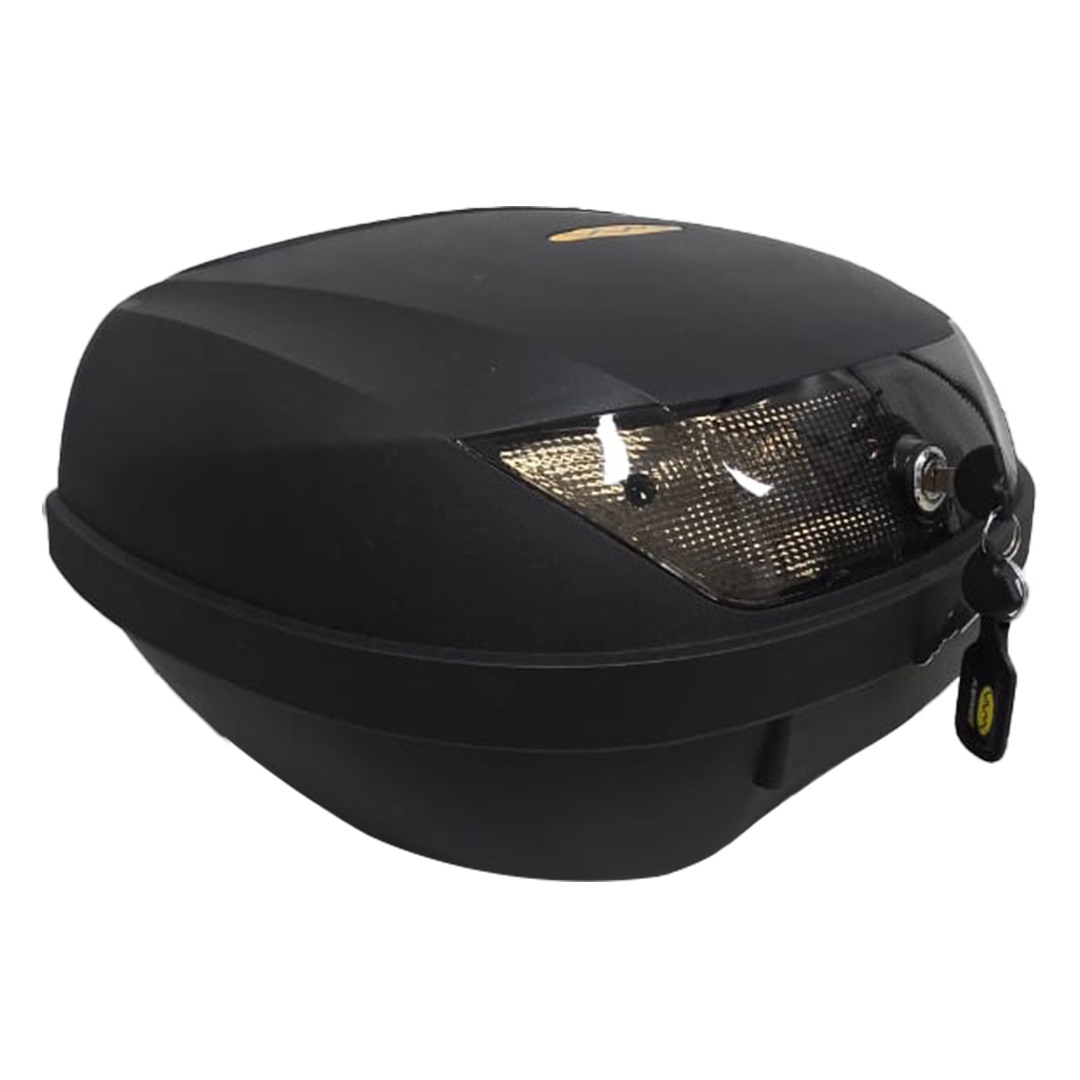 Baul porta-objetos mod. ELEGANT36 de 36 litros para moto universal c/ Portapaquete y soporte SUPER REFORZADO y reflectivo trasero fume