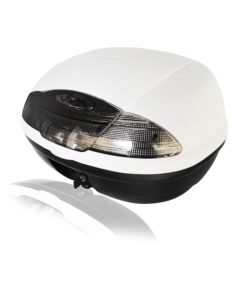 BAUL porta objetos mod. VAM45, medida 530x430x333 / para 2 cascos, con tope de apertura, base desmontable, respaldar y reflectivo trasero.
