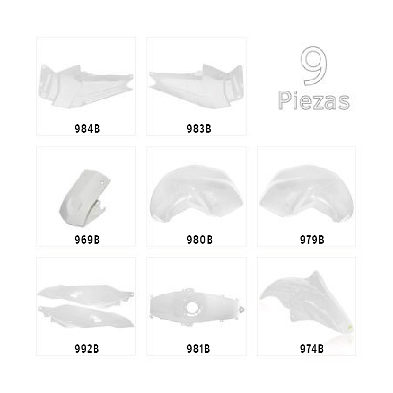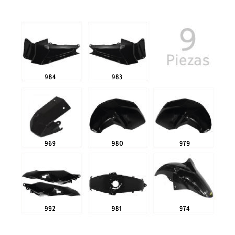 Kit Carenado YAMAHA FZ-16 20 piezas Color Negro (945/982/942/976/977/983/981/984/948/969/974/988/989/966/986/985/980/979/982/Box)