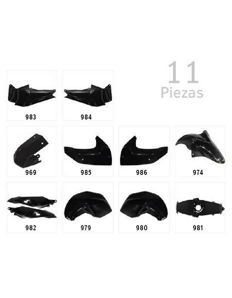 Kit Carenado YAMAHA FZ-16 "11" piezas Color Negro