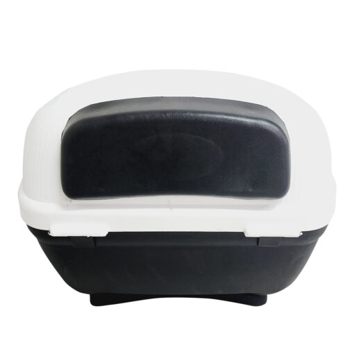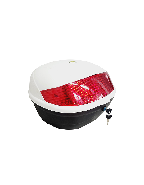 BAUL porta objetos 33x44x41 para 1 casco, "BLANCO"con tope de apertura, base desmontable, respaldar, reflectivo trasero y 2 llaves. ( incluye llave allen).