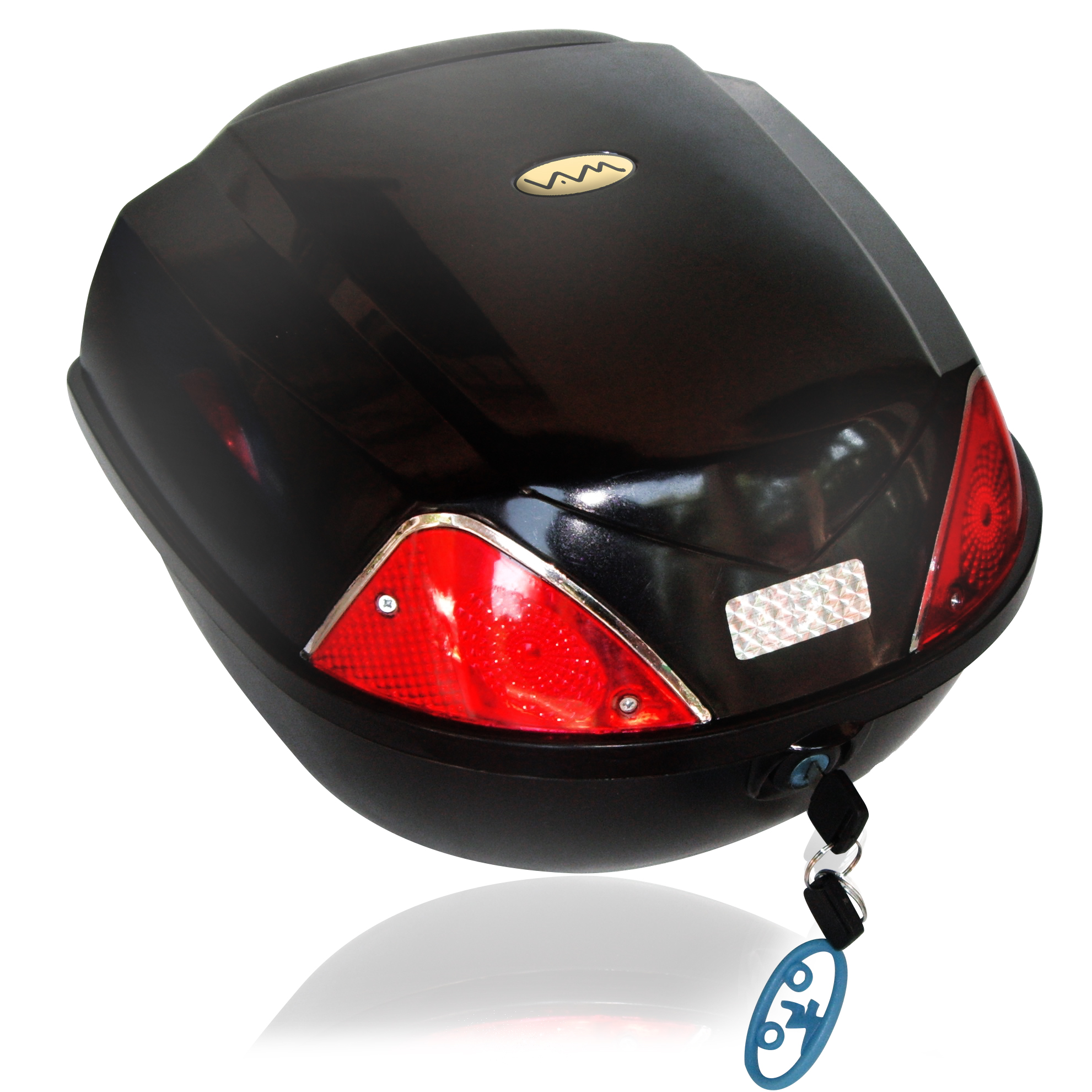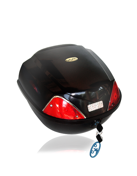 Baul porta-objetos 36X34X25 para moto / bicicleta universal con doble ojo de gato C/ TAPA NEGRA (CAVIDAD 1 CASCO)
