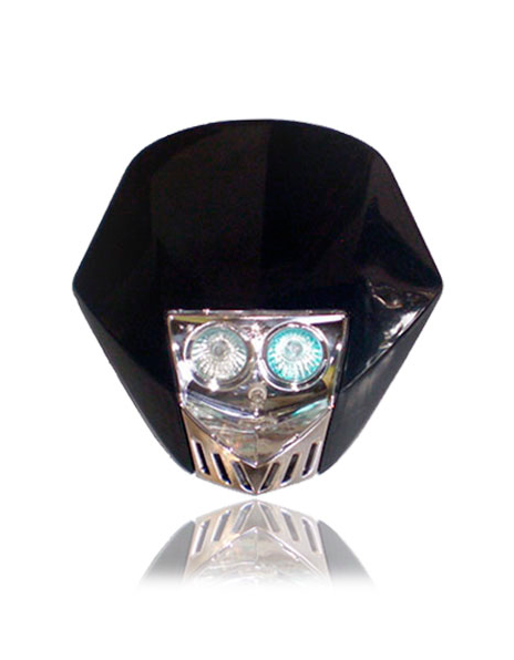 CUPULINA DELANTERA MOD. EXPLORER UNIVERSAL COMPLETA con 2 lamparas Dicroica 12V/20W y 1 regl.12V/5W. Colores NEGRA INCLUYE 4 CORREAS DE MONTAJE en caja exhibitoria