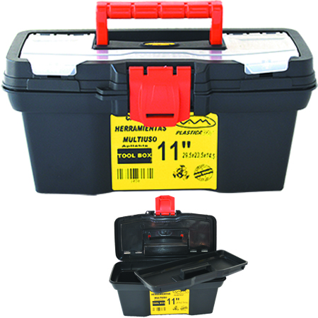 Caja de Herramientas / Multiuso 11" 29,5x20,5x14,5 color negro c/bandeja divisora y Tapa Organizadora Con Cerradura Plastica REFORZADA