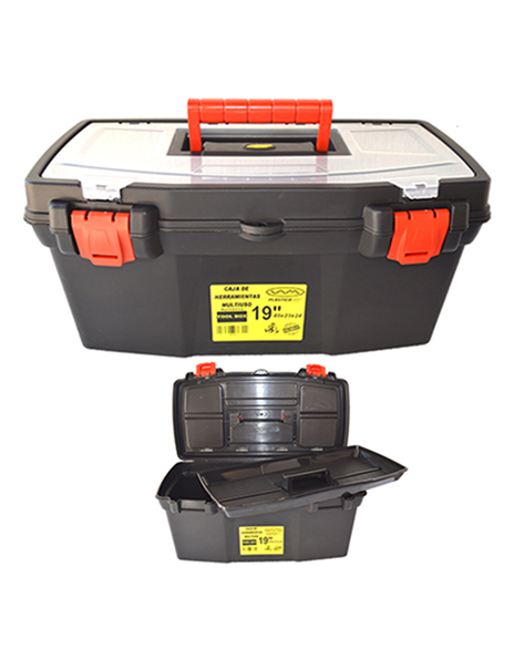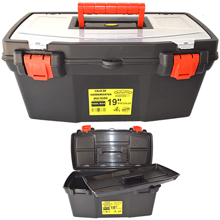 Caja de Herramientas / Multiuso 19" 48x23x24 color negro c/bandeja divisora y Tapa Organizadora Con Cerradura Plastica REFORZADA