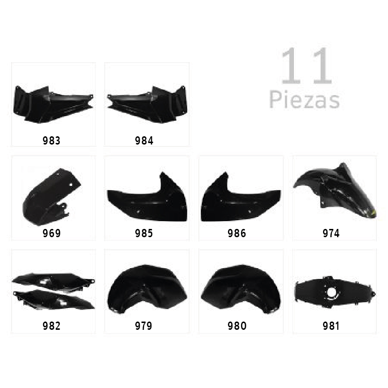 Kit Carenado YAMAHA FZ-16 20 piezas Color Negro (945/982/942/976/977/983/981/984/948/969/974/988/989/966/986/985/980/979/982/Box)