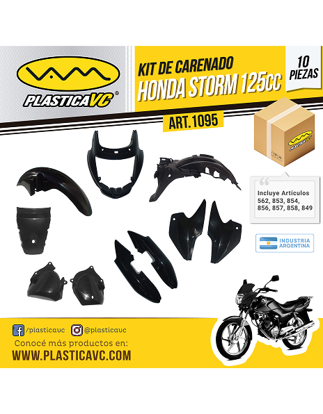 KIT Carenado HONDA STORM 125 cc (FLEXIBLE) 10 Piezas color Negro (562-853-854-856-857/858/849/BOX)