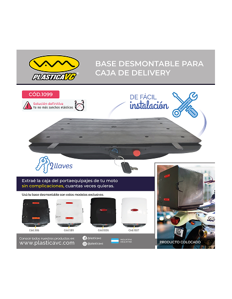 Base desmontable extraible para Caja Delivery extraible c/ 2 llave. Incluye kit e Instructivo de instalacion.