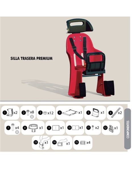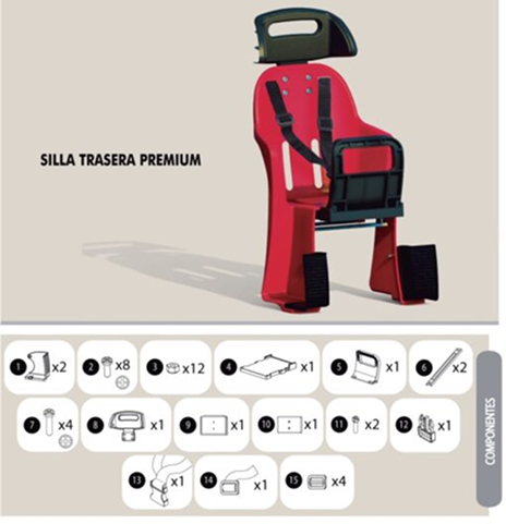 Silla de niños trasera para bicicletas compacta Max. 15kg. c/ refractario trasero color NEGRO y kit de instalacion
