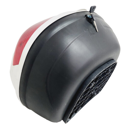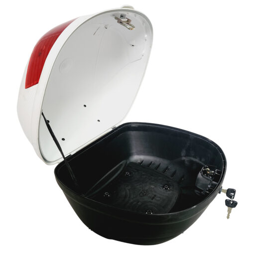 BAUL porta objetos 33x44x41 para 1 casco, "BLANCO"con tope de apertura, base desmontable, respaldar, reflectivo trasero y 2 llaves. ( incluye llave allen).